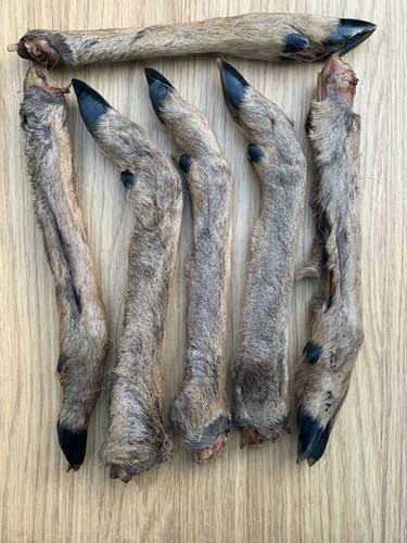 Deer legs are high in protein which aids in muscle and tissue repair. They are high in collagen for healthy coats and skin, high in glucosamine and chondroitin that aids in promoting joint health.